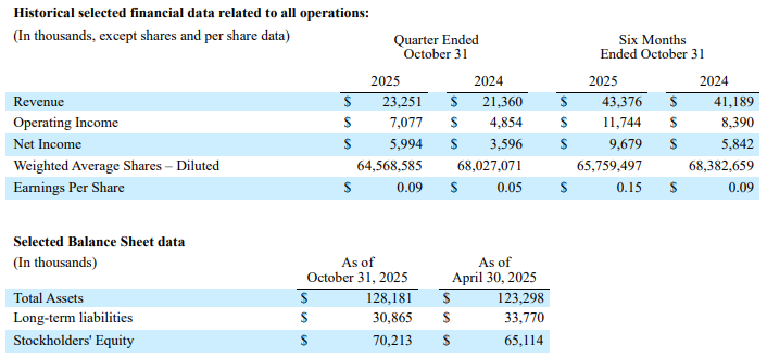 As of October 31, 2025 and 2024, our backlog totaled approximately $46.3 million and $38.1 million, respectively. The backlog includes firm, pending, and contract orders, which may not be completed within the next fiscal year. There can be no assurance that all orders will be completed or that some may ever commence.